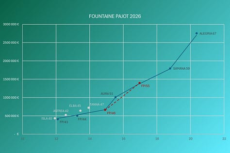 Across all three manufacturers, we also note that whilst prices remain stable for entry-level models, they soar from around 50 feet upwards. This shift in the curve can be explained by an increase in interior volume that is proportionally greater than the increase in length, as well as by more luxurious finishes and fittings. Due to a lack of historical data, we do not present figures for Excess and Leopard, but their data has now been integrated and they will soon be included in our analyses.