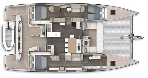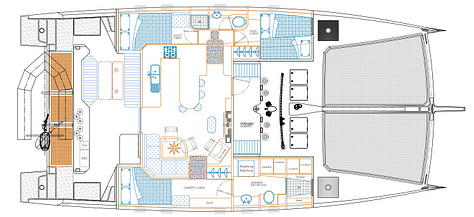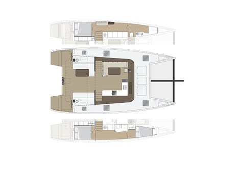 The advantage of aluminum catamarans produced in small series, without moulds, is that they can be quite easily customized. So, while the first Explocat 52 was built with two helm stations at the stern, all the others have been delivered with "a very heavy conditions deck layout, meaning that it's organized so that the helmsman can steer 'in slippers' in the lower section thanks to the pendulum helm", Marc d'Arbigny, Garcia's CEO, tells us. Vaan has a slightly different philosophy, as its founder Igo Kluin tells us: "The essence of Vaan is sailing, style and sustainability. So sailing is important, that's why we have a low boom and the helm stations at the back. Catamarans are fantastic for cruising, for partying and lounging of course, but it's also a sailboat and for us it's a sailboat first". Brian and Karin have taken a radically different choice with a forward cockpit: "Will it be wet? Yes, sometimes if you're beating upwind into heavy weather, it will probably be wet but if you're looking at long distance cruising, 80%+ of our time is spent downwind or around the beam or behind the beam, and in those cases, we will be more protected because we'll have the boat behind us. We opted to put our helm inside as we did some sailing up North to Svalbard, 80° North, and up into Maine in Canada in very poor and cold weather, also bad weather in the tropics. And there was a lot of times where I wished my helm was more protected, out of the elements, out of the sun, out of the weather."