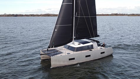 So, while aluminum may not be the future of the catamaran, at least for cost reasons, the niche market of the exploration or custom-built multihull has a radiant future. Lightness, solidity, rigidity and ecology are the perfect answer to the demands of our time and of all those who don't want a boat like the others, or to go where all the others go. Behind Garcia, who has taken the lead in this market with 21 boats ordered, Vaan is playing the card of a unique minimalist style that leaves no one indifferent. As for S/V Delos 2.0, it is currently a one-off prototype, but others could follow these navigators and influencers of the third millennium. In the meantime, hull fabrication is done and seatrials are schedule for the first half of next year. “We are definitely a year from completion” concluded Brian enthusiastically live from the original S/V Delos en route to Australia from Fiji.